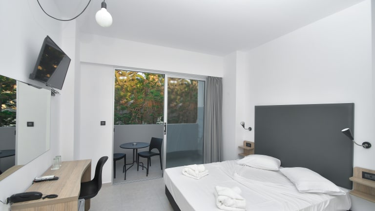 Das Hotel Evita Bay verfügt über renovierte Zimmer, die Ihnen allen Komfort bieten, den Sie für einen erholsamen Aufenthalt benötigen. Die Zimmer sind modern eingerichtet und verfügen über eine individuell regelbare Klimaanlage, einen Flachbildfernseher mit deutschen Programmen und kostenfreies WLAN. Von Ihrem Balkon oder Ihrer Terrasse aus haben Sie einen herrlichen Blick auf den Garten oder das Meer.