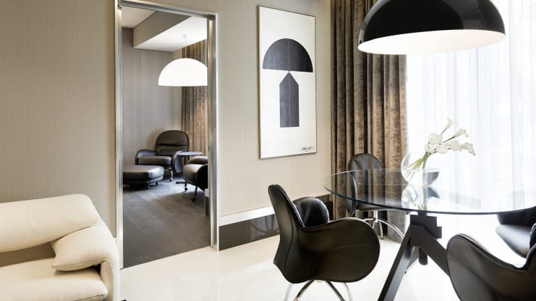 Die Zimmer sind mit italienischen Designermöbeln, raumhohen Fenstern, einer Klimaanlage und Heizung ausgestattet. Zu den Annehmlichkeiten gehören ein Balkon oder eine Terrasse, ein Safe, eine Minibar und ein Schreibtisch. Zudem sind Annehmlichkeiten wie Kühlschrank, Tee-/Kaffeemaschine, ein TV-Gerät und kostenloses WLAN verfügbar. Die Badezimmer verfügen über eine Dusche, eine Badewanne, einen Haartrockner und Bademäntel. Es gibt auch rollstuhlgerechte Zimmer.