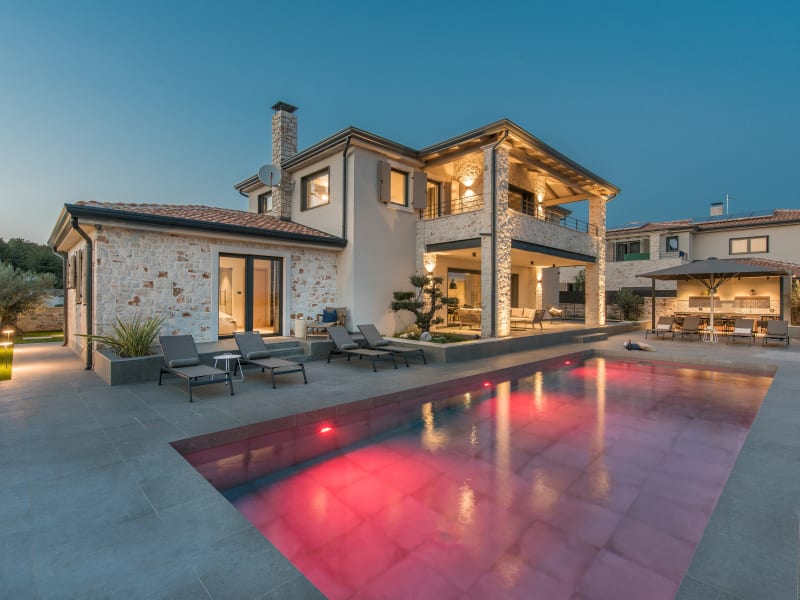 Auf einer Anhöhe zwischen Novigrad und Porec, am Rande des kleinen istrischen Dorfes Tar-Vabriga, findet man unsere exklusiven neu erbauten Poolvillen. Land und Leute sind geprägt von Landwirtschaft, Fischerei und der seit Generationen gelebten Gastfreundschaft. Auch außerhalb der Sommermonate ist dieses wunderschöne Fleckchen Erde inmitten von Spitzenwinzern, Olivenhainen, Trüffeln, Pilzen und Top-Restaurants unglaublich attraktiv. Mediterraner Lifestyle, eine Vielzahl an naturbelassenen Stränden und abwechslungsreiche istrische Küche werden Sie verzaubern. Wenige Kilometer entfernt von der wunderschönen Adria Küste, sind wir idealer Ausgangspunkt um das attraktive Hinterland mit seinen mittelalterlichen Städtchen wie Groznjan, Buje oder Motovun mit Fahrrad oder Auto zu erkunden. Raum zum Leben, langsamer werden, durchatmen, bewusst Auszeit nehmen, das mediterrane Lebensgefühl und den Duft des Meeres aufsaugen. Wir bieten Ihnen unbeschwertes Urlauben in privater Atmosphäre abseits von Touristenströmen. Design trifft Genuss für alle Sinne. Mit privatem Pool, Sonnendeck, Außenküche und überdachtem Essbereich, genießt man den Blick auf die Adria Küste bis die Sonne am Horizont in leuchtendem Rot untergeht. Typische istrische Architektur gepaart mit Moderne - Holz - Stein - Stahl - authentisch und exklusiv, mit perfekter Symbiose von Farbe und Form. Seelenwärme in der Panoramasauna - Weitblick auf Land und Meer – einatmen – ausatmen - innere Balance finden - unvergessliche Urlaubstage genießen. Lieblingsplätze für jeden Geschmack - inspiriert in Ihrem Traumhaus