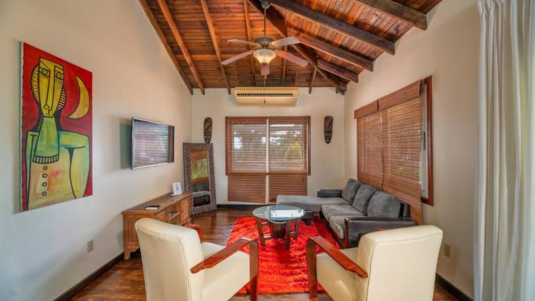 Das Ferienhaus ist klimatisiert und bietet Platz in 2 Schlafzimmern. Dazu sind ein Wohnzimmer, eine voll ausgestattete Küche (mit Kühlschrank und Kaffeemaschine) und 2 Badezimmer mit Dusche und kostenlosen Pflegeprodukten vorhanden. Handtücher und Bettwäsche werden bereitgestellt.