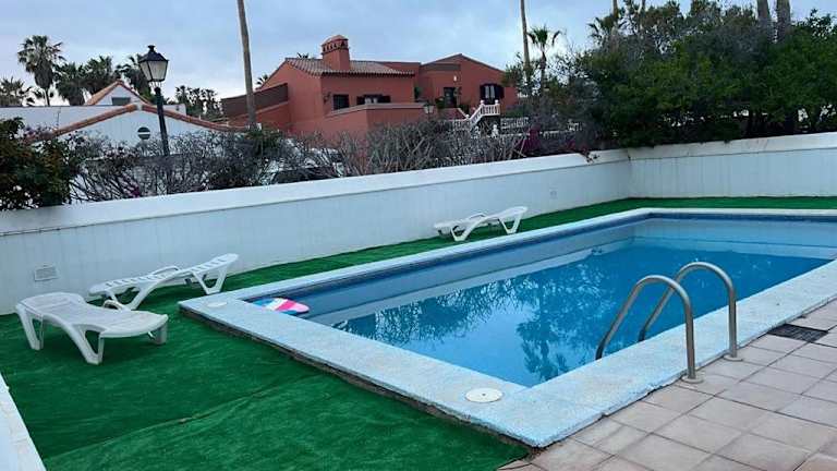 Genießen Sie einen exklusiven Aufenthalt in der Golf Villa mit beheiztem Pool in San Miguel de Abona. Die Villa bietet eine Terrasse mit Poolblick, einen eigenen Pool und einen Garten. Entspannen Sie sich in einer luxuriösen Umgebung und nutzen Sie die Nähe zum Strand und zum Golfplatz.