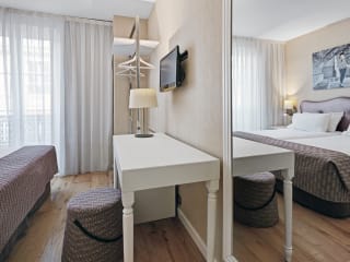 Das Hotel Exe Paris Centre ist die ideale Wahl für Ihren Aufenthalt in Paris. Es liegt günstig zwischen dem charmanten Montmartre und dem lebhaften Opernviertel und ist nur wenige Gehminuten vom Bahnhof Saint-Lazare entfernt. Die klimatisierten Zimmer sind modern eingerichtet und bieten allen Komfort, den Sie sich wünschen. Genießen Sie die kostenfreie Nutzung von WLAN und die Annehmlichkeiten wie eine Minibar und ein eigenes Marmorbad. Starten Sie Ihren Tag mit einem leckeren Frühstück vom Buffet und nutzen Sie den praktischen Zimmerservice. Die freundlichen Mitarbeiter an der 24-Stunden-Rezeption stehen Ihnen jederzeit zur Verfügung und helfen Ihnen gerne bei der Planung von Touren und Ausflügen. Die berühmte Opéra Garnier und die beeindruckende Madeleine erreichen Sie bequem zu Fuß in nur 15 Minuten. Machen Sie auch einen Spaziergang zu den Tuilerien und dem Louvre, die nur 2 km vom Hotel entfernt sind.
