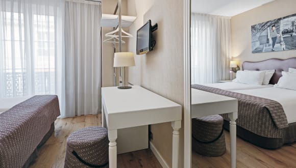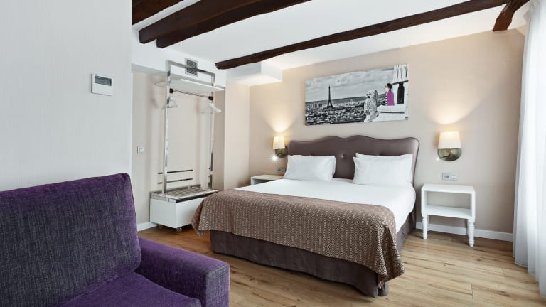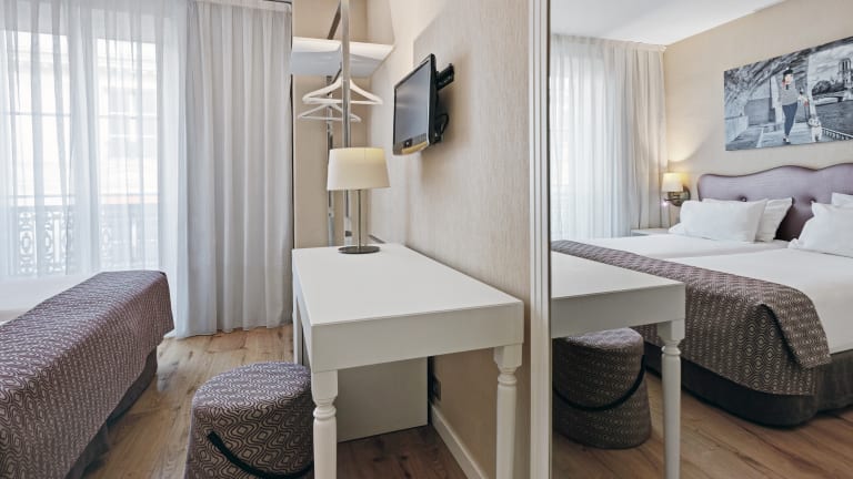 Das Hotel Exe Paris Centre bietet Ihnen komfortable und modern eingerichtete Zimmer, die Ihnen einen angenehmen Aufenthalt garantieren. Die Zimmer sind in neutralen Farben gehalten und mit Holzmöbeln ausgestattet. Sie sind klimatisiert und verfügen über ein eigenes Marmorbad sowie Sat-TV. Die Zimmer sind schallisoliert, sodass Sie sich in Ruhe entspannen können. Kostenloses WLAN steht Ihnen zur Verfügung, damit Sie jederzeit mit Ihren Lieben in Kontakt bleiben können. Eine Minibar ist ebenfalls vorhanden, so dass Sie sich jederzeit mit erfrischenden Getränken versorgen können. Im eigenen Bad finden Sie Pflegeprodukte und einen Haartrockner für Ihre Bequemlichkeit.
