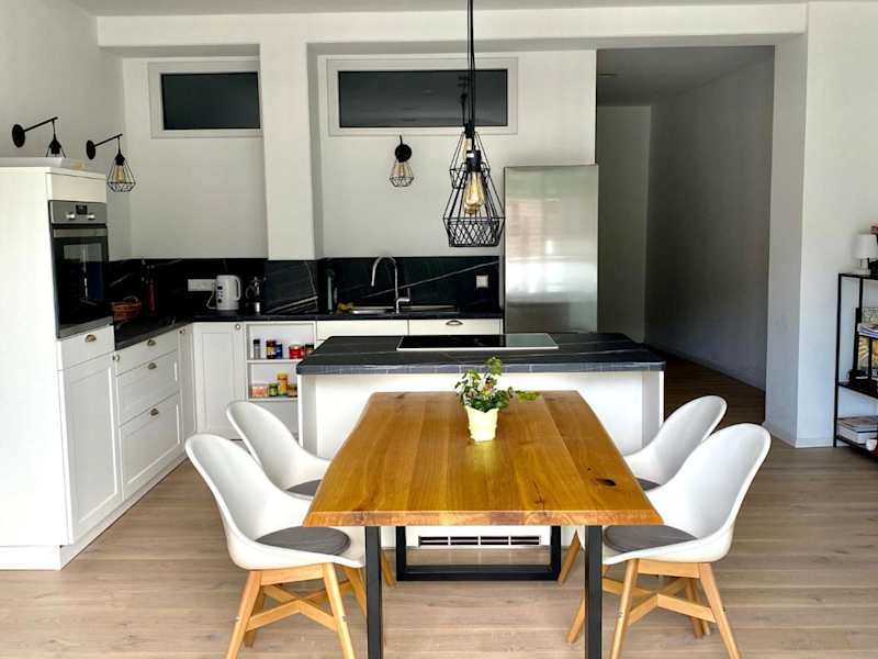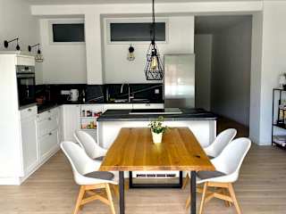 Die exklusive 82 qm große Loftwohnung zeichnet sich durch eine moderne Ausstattung aus und bietet einen Süd-Balkon sowie Zugang zu einer Tiefgarage. Die Unterkunft wird von einem privaten Gastgeber geführt und zeichnet sich durch eine ruhige Atmosphäre aus. Es sind keine Feiern wie Junggesellenabschiede erlaubt, was auf die familiäre Ausrichtung hinweist. Die Mindestalter für den Check-in beträgt 18 Jahre.