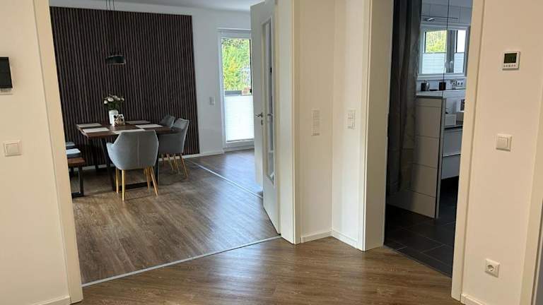 Die Ferienwohnung umfasst 2 Schlafzimmer, ein Badezimmer mit Dusche und Badewanne, ein Wohnzimmer mit Sitz- und Essbereich sowie eine voll ausgestattete Küche mit Kühlschrank, Geschirrspüler und Ofen. Zudem sind ein Blu-ray-Player sowie Handtücher und Bettwäsche vorhanden.