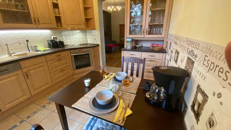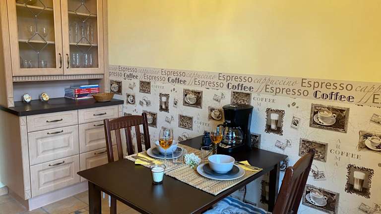 In den Exklusiven Ferienwohnungen im Gutshaus Viezen können Sie Ihre Mahlzeiten selbst zubereiten, da jede Unterkunft über eine voll ausgestattete Küche verfügt. Es gibt jedoch auch verschiedene Restaurants und Cafés in der Umgebung, in denen Sie lokale Spezialitäten und internationale Gerichte genießen können. Lassen Sie sich von den Gastgebern gerne Tipps und Empfehlungen geben.