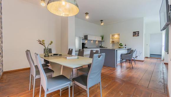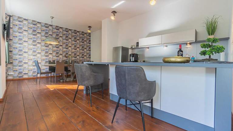 Die Stadtvilla bietet 3 Schlafzimmer, ein Wohnzimmer und eine voll ausgestattete Küche mit Kühlschrank und Kaffeemaschine. Es gibt auch 2 Badezimmer mit Dusche und Badewanne. Handtücher und Bettwäsche werden gestellt. Die Villa erstreckt sich über 4 Etagen und verfügt über eine Waschmaschine. Genießen Sie auch den Komfort von Netflix und kostenfreiem WLAN.