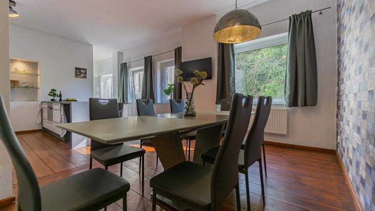 Erleben Sie einen exklusiven Aufenthalt in der Stadtvilla in Cottbus, nur 200 m vom Staatstheater entfernt. Die geräumige Villa bietet 190 qm Wohnfläche, Parkplatz, 3 Schlafzimmer, 2 Bäder, Netflix und eine Waschmaschine. Genießen Sie den Komfort auf 4 Etagen und die Nähe zum Theater. WLAN, eine Gemeinschaftsküche und eine Gemeinschaftslounge stehen Ihnen zur Verfügung. Entspannen Sie im Garten oder auf der Terrasse und nutzen Sie den Grill. Die Technische Universität Brandenburg Cottbus und der Hauptbahnhof sind nur 1,2 km entfernt.