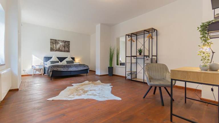 Die exklusive Stadtvilla befindet sich in zentraler Lage in Cottbus, nur 200 m vom Staatstheater entfernt. In der Nähe finden Sie auch die Spremberger Straße. Die Technische Universität Brandenburg Cottbus und der Hauptbahnhof sind nur 1,2 km entfernt. Der Flughafen Berlin Brandenburg Willy Brandt ist etwa 107 km entfernt.
