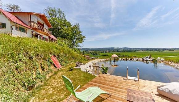 Die Unterkunft Exklusives Zimmer im Kräuterstöckl umfasst ein Ferienhaus mit ausgelagertem Poolblick, einem Außenpool, einer Gemeinschaftslounge sowie einer Terrasse. Es stehen ein Garten und ein Grill zur Verfügung, begleitet von kostenlosem WLAN und kostenlosem Privatparkplatz.