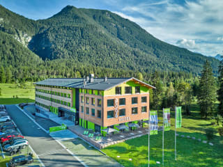 Entdecke die Alpen! Das neue Explorer Hotel Garmisch in Farchant mit Zugspitzblick ist genau die richtige Unterkunft für alle, die einen unkomplizierten Urlaub in den Bergen suchen. Hier trifft modernes Design auf lockere Atmosphäre und sportlich-aktive Gäste: • Trendige Design-Zimmer (21m²) mit viel Stauraum und Sitzbank im Panoramafenster • Sport Spa mit Sauna, Dampfbad, Infrarotkabine und Fitnessraum • Explorer Lounge mit Bar • Ski und Bike Area mit Werkbank, Sportlockern und Waschplatz • Explorer Walls – interaktive Bildschirme mit Tourenvorschlägen, Veranstaltungs- sowie Einkehrtipps, Webcams • Water-Bar direkt in der Lounge zum Händewaschen, desinfizieren und zum Auffüllen der Sportflasche • Elektroladestationen (gegen Gebühr) Als erste zertifizierte Passivhaus-Hotels Europas stehen die Explorer Hotels für Nachhaltigkeit ein und bringen Sportlichkeit, günstige Preise und hohe ökologische Standards erfolgreich unter einen Hut. Alle Explorer Hotels sind klimaneutral und damit die richtige Unterkunft für einen nachhaltigen Urlaub in den Bergen! Neben Kooperationen mit lokalen Sportpartnern verzichtet das Explorer Hotel Garmisch bewusst auf ein hauseigenes Restaurant und unterstützt so die Infrastruktur vor Ort.