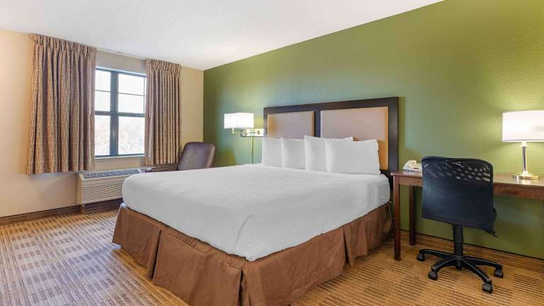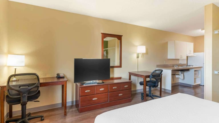 Die Zimmer im Extended Stay America - Dublin - Hacienda Dr. sind mit voll ausgestatteten Küchen ausgestattet, die über ein Kochfeld, eine Mikrowelle und einen Kühlschrank verfügen. Diese Annehmlichkeit ermöglicht es den Gästen, ihre eigenen Mahlzeiten zuzubereiten und so Geld zu sparen. Zusätzlich bietet das Hotel Wäschemöglichkeiten und Bügeleisen/-bretter, um den Gästen den Aufenthalt so bequem wie möglich zu gestalten. Die hochwertige Bettwäsche und die zusätzlichen Kissen sorgen für einen erholsamen Schlaf.