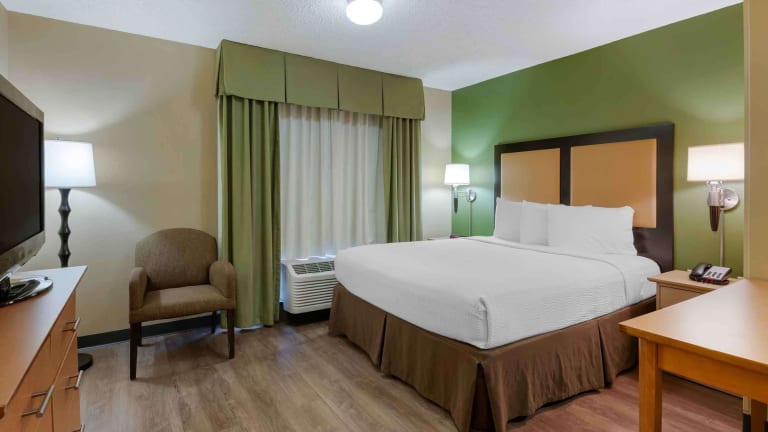 Das Extended Stay America Suites - Orlando - Orlando Theme Parks - Vineland Rd ist eine ideale Unterkunft für einen Aufenthalt in Orlando. Das Hotel bietet haustierfreundliche Zimmer mit voll ausgestatteter Küche und ein kostenloses Frühstück zum Mitnehmen. Die Lage ist perfekt, da das Universal Orlando Resort und das exklusive Einkaufszentrum The Mall at Millenia in unmittelbarer Nähe liegen. Ein Fitnesscenter, ein Außenpool und eine Sonnenterrasse sorgen für Entspannung und Erholung.
