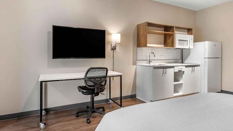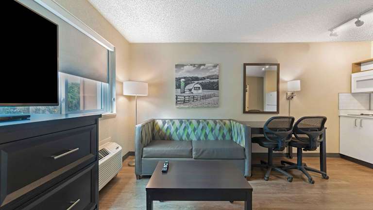 Das Extended Stay America Miami bietet 103 Nichtraucherzimmer auf drei Etagen. Jedes Zimmer verfügt über eine Klimaanlage und eine individuell regelbare Heizung. Die Zimmer sind mit einer Küchenzeile ausgestattet, die einen Kühlschrank, eine Mikrowelle, einen Herd, eine Tee- und Kaffeemaschine sowie einen Geschirrspüler umfasst. Ein Schreibtisch und ein Flachbildfernseher mit Kabelempfang sind ebenfalls vorhanden. Die Badezimmer verfügen über eine Dusche oder eine Badewanne und einen Haartrockner.