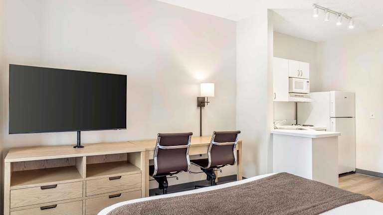 Die Zimmer im Extended Stay America - Long Island - Melville sind mit einer praktischen Küchenzeile ausgestattet, die mit Küchenutensilien für Ihre Bequemlichkeit ausgestattet ist. Die Zimmer verfügen außerdem über Kabel-TV und einen Schreibtisch. WLAN steht Ihnen in allen Zimmern zur Verfügung.