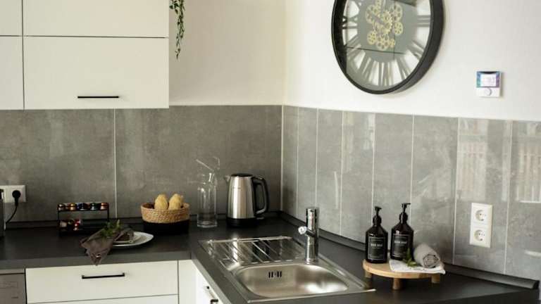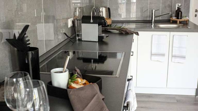 Die Unterkunft verfügt über eine voll ausgestattete Küche, die unter anderem einen Kühlschrank und eine Kaffeemaschine beinhaltet.