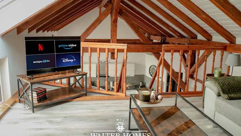 Die Fachwerkcharme: Wohnen in großer Maisonettwohnung bietet Übernachtungsmöglichkeiten in einer geräumigen Maisonettwohnung. Zur Ausstattung gehören kostenloses WLAN und ein Flachbild-TV sowie ein Balkon und eine Terrasse.