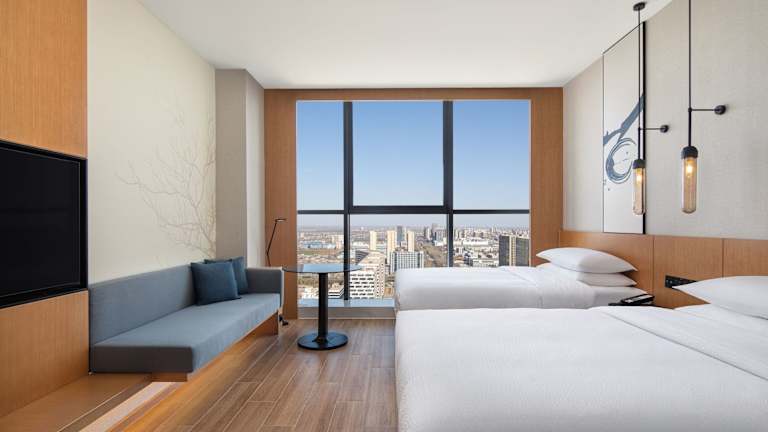 Das Fairfield by Marriott Shijiazhuang High-Tech Zone bietet komfortable Zimmer mit moderner Ausstattung. Jedes Zimmer verfügt über Annehmlichkeiten wie kostenfreies WLAN, einen Flachbild-TV und ein eigenes Bad. Das Hotel bietet auch eine 24-Stunden-Rezeption und einen Zimmerservice, um Ihren Aufenthalt so angenehm wie möglich zu gestalten.