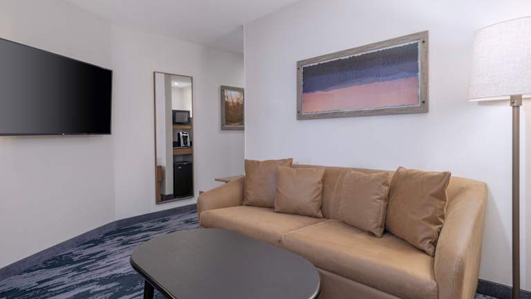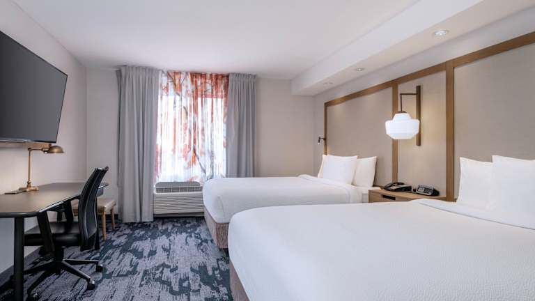 Die Zimmer im Fairfield Inn & Suites Denton sind klimatisiert und verfügen über einen Sitzbereich sowie moderne Annehmlichkeiten wie Flachbild-TV, kostenfreies WLAN, ein eigenes Badezimmer und eine Auswahl an Bettwäsche. Die Räume sind mit Teppichboden ausgestattet und bieten verschiedene Bettvarianten, darunter Doppel- und Kingsize-Betten. Jedes Zimmer ist mit einem Kühlschrank, einer Mikrowelle und zusätzlichen Komforts wie einem Safe, einer Minibar und einer Tee-/Kaffeezubereiter ausgestattet. Die Badezimmer sind mit Duschen und Haartrocknern ausgestattet. Es sind sowohl Nichtraucher- als auch Raucherzimmer verfügbar, ebenso wie barrierefreie Zimmer mit speziellen Einrichtungen.