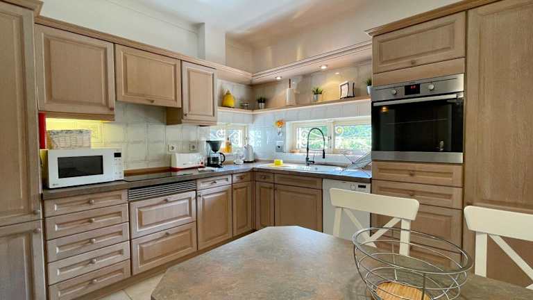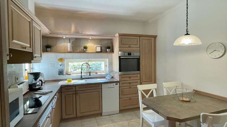 Die Villa umfasst 3 Schlafzimmer, ein Wohnzimmer und eine voll ausgestattete Küche, die mit Kühlschrank und Kaffeemaschine ausgestattet ist. Es gibt 4 Badezimmer mit Dusche und Haartrockner. Handtücher und Bettwäsche werden bereitgestellt. Die Villa ist klimatisiert.