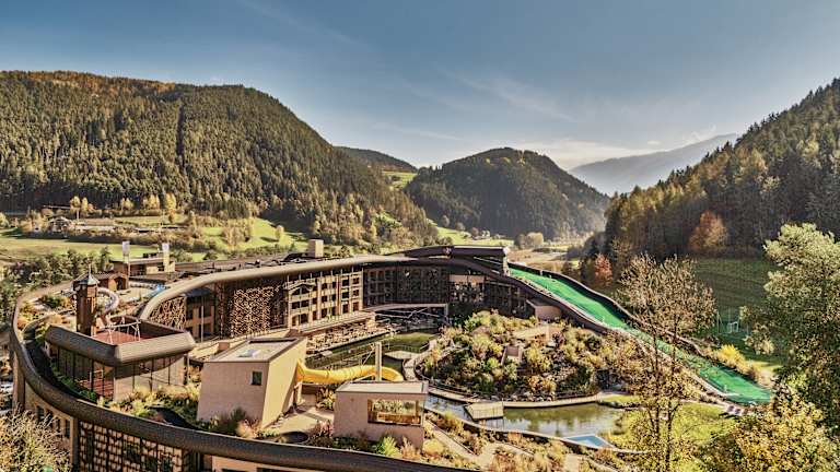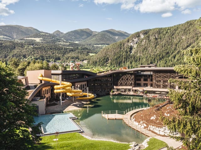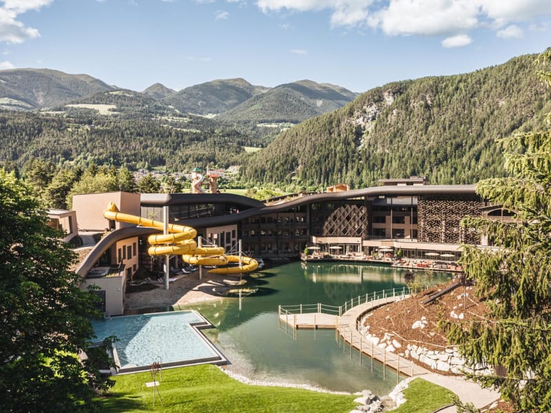 2.800 qm Wohlfühlrefugium: Acquapura Spa & Wasserwelt 120m lange Indoor-Wasserrutsche inkl. Zeitmessung Großes Hallenbad mit Infinity-Outdoor-Pool im Natursee Wellenrutsche für die ganze Familie Großes Babybecken zum Plantschen, ca. 32° C Lido-Beach mit karibischem Sandstrand Adults only Spa Area mit Finnischer Sauna, Kräutersauna, Dampfbad, Infinity Rooftop-Pool und neuem Ruheraum Familiensauna Großzügiger Relaxraum Regenerierende Massagen & Beauty-Treatments mit Pharmos Natur Voll ausgestatteter Fitnessraum Ganzjährig: Sightseeing & Shopping (Bruneck, Brixen, Bozen) Sommer: Fitness- und Entspannungsprogramme Wandern, Bergsteigen, Radfahren, Mountainbiken, Golf, Minigolf, Rafting, Canyoning Winter: Skigebiet Kronplatz (10 km entfernt; kostenloser Transfer): Skifahren, Snowboarden, Langlaufen, Rodeln, Tourenski, Schneeschuhwandern u.v.m.