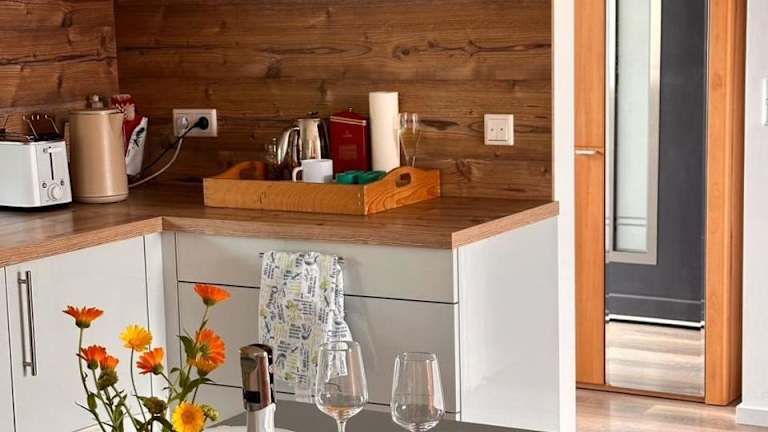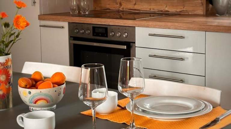 Die Unterkunft verfügt über eine voll ausgestattete Küche mit Kühlschrank, Geschirrspüler, Ofen, Herdplatte, Toaster, Kaffeemaschine und Wasserkocher, was eine Selbstverpflegung ermöglicht.