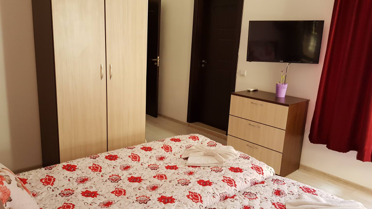 Das Family Aparthotel Vintegra in Burgas bietet komfortable Unterkünfte in günstiger Lage. Mit klimatisierten Schlafzimmern und einer voll ausgestatteten Küche fühlen Sie sich wie zu Hause. Das Hotel liegt in der Nähe des Opernhauses Burgas und des Busbahnhofs Yug, und das Meer ist nur einen kurzen Spaziergang entfernt. Kostenloses WLAN steht Ihnen zur Verfügung, und das Stadtzentrum von Burgas ist ebenfalls bequem zu erreichen.