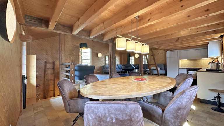 Das Chalet verfügt über drei Schlafzimmer, ein Wohnzimmer und eine voll ausgestattete Küche mit Kühlschrank und Kaffeemaschine. Es sind zudem drei Badezimmer vorhanden, welche jeweils mit einer Dusche und einem Haartrockner ausgestattet sind. Handtücher und Bettwäsche werden für die Gäste bereitgestellt.