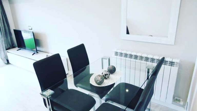 Die Ferienwohnung ist klimatisiert und umfasst 2 Schlafzimmer, ein Wohnzimmer sowie eine voll ausgestattete Küche mit Kühlschrank und Kaffeemaschine. Ein Badezimmer mit Dusche und kostenlosen Pflegeprodukten ist ebenfalls vorhanden. Handtücher und Bettwäsche werden bereitgestellt.