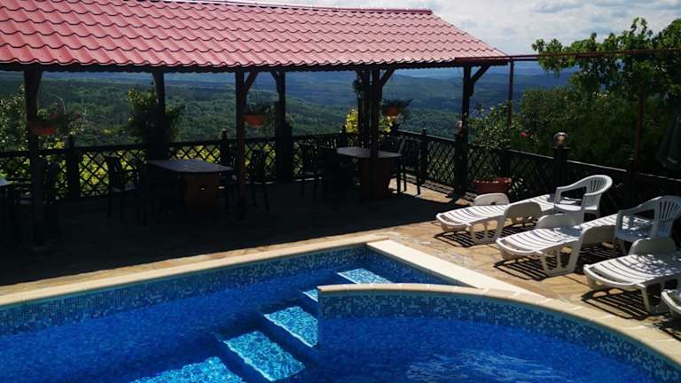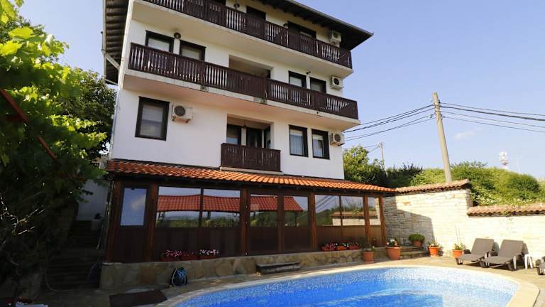 Das Family Hotel Arbanashka Sreshta in Arbanassi bietet seinen Gästen einen erholsamen Aufenthalt mit einem atemberaubenden Panoramablick auf die Umgebung. Genießen Sie den Außenpool, die typisch bulgarische Küche und die Möglichkeit, das Abendessen im Freien einzunehmen. Das Hotel bietet kostenfreies WLAN und komfortable Zimmer mit Balkon und Klimaanlage. Entspannen Sie in der traditionellen Taverne mit Kamin und probieren Sie die köstlichen Gerichte und Weine. Von der Terrasse aus können Sie die herrliche Aussicht auf Veliko Tarnovo und die historischen Hügel Tsarevets, Trapezitza und Sveta Gora genießen. Das Hotel ist ideal gelegen, nur 500 m vom Dorf Arbanassi und 7 km vom Stadtzentrum von Veliko Tarnovo entfernt. Auf Anfrage können Sie auch Besichtigungen der Klöster und Museen in der Umgebung organisieren lassen.