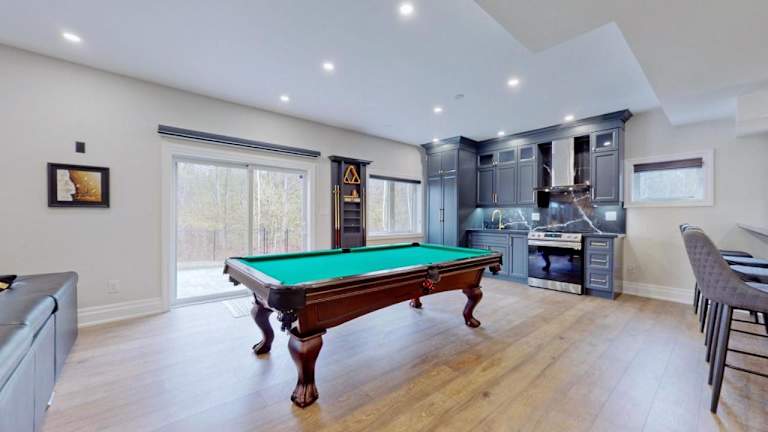 Das Family Modern Walkout Basement wSauna Indoor Fireplace Wifi bietet Ihnen einen Billardtisch, auf dem Sie sich vergnügen können. Genießen Sie auch den schönen Garten und nutzen Sie die Sauna, um sich zu entspannen und neue Energie zu tanken. In der Umgebung gibt es auch verschiedene Freizeitaktivitäten und Attraktionen, die Sie erkunden können.