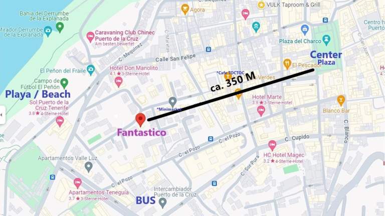 Die Unterkunft befindet sich in Puerto de la Cruz, 500 m von der Playa Jardín und 400 m von der Plaza Charco entfernt. In der Nähe befinden sich der Parque Taoro (1 km) und der Botanische Garten (3 km). Der nächstgelegene Flughafen ist der Flughafen Teneriffa Nord, der 25 km entfernt ist.
