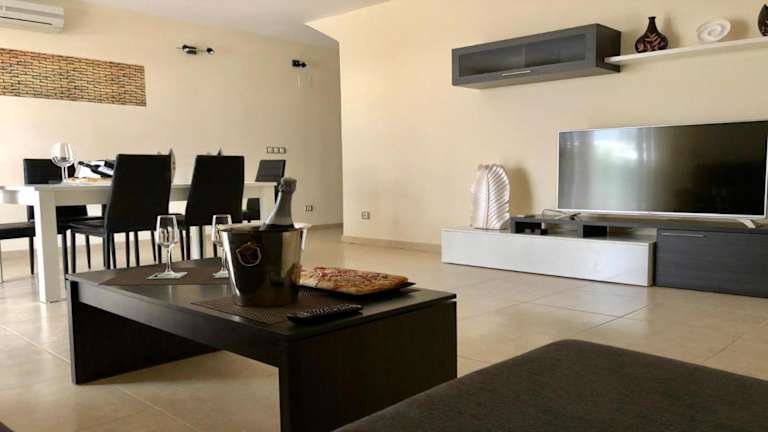 Die Unterkunft bietet ein Ferienhaus mit Klimaanlage, das über 3 Schlafzimmer, ein Wohnzimmer und eine voll ausgestattete Küche mit Kühlschrank und Kaffeemaschine verfügt. Es gibt 3 Badezimmer, die mit einem Bidet und einer Dusche ausgestattet sind. Handtücher und Bettwäsche werden zur Verfügung gestellt.