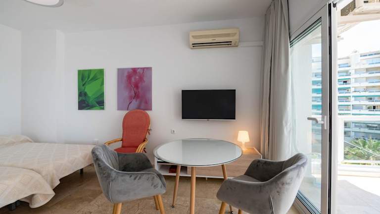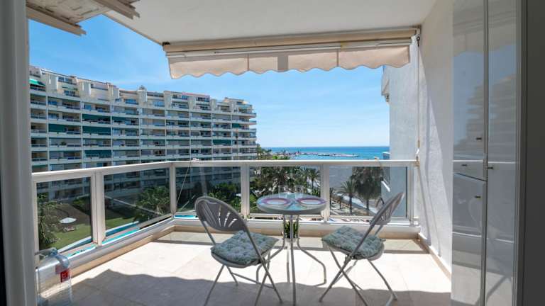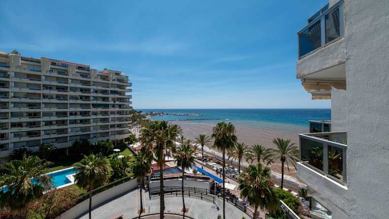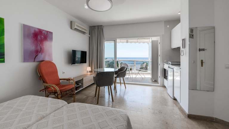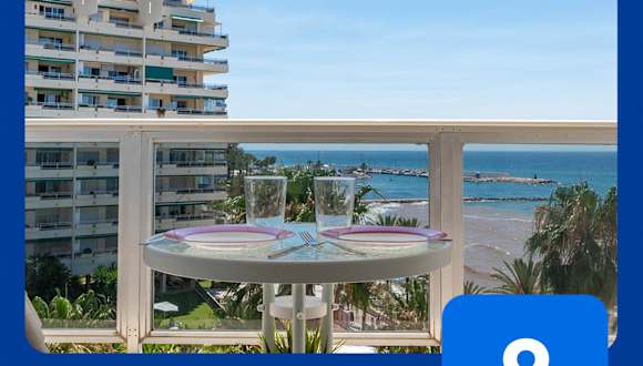 Fantástico estudio en Marbella bietet eine Ferienwohnung mit einem saisonalen Außenpool und einer Terrasse. Die Unterkunft ist am Strand gelegen und ermöglicht den direkten Zugang zu einem Balkon. WLAN ist kostenfrei verfügbar.