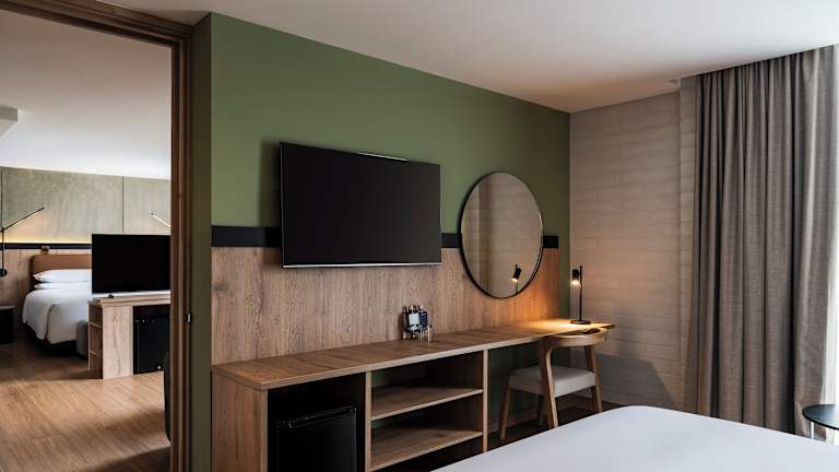 Die Zimmer sind klimatisiert und mit einem Doppelbett oder Queensize-Bett ausgestattet. Zu den Annehmlichkeiten zählen eine Minibar, ein Schreibtisch, ein Safe, ein Kühlschrank und ein TV-Gerät mit Satelliten-/Kabelempfang. Das Badezimmer umfasst eine Dusche und einige Zimmer sind als Nichtraucherzimmer erhältlich.