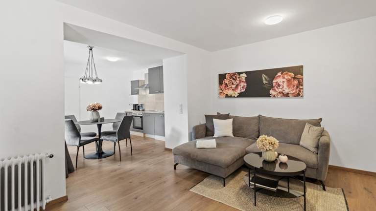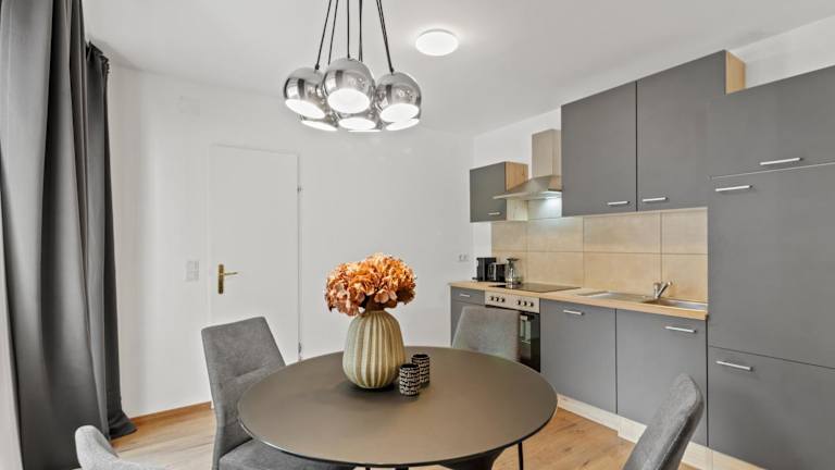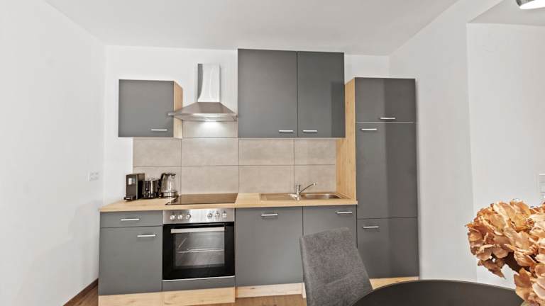 Die Ferienwohnung besteht aus einem Schlafzimmer, einem Wohnzimmer sowie einer voll ausgestatteten Küche, die mit einem Kühlschrank und einer Kaffeemaschine ausgestattet ist. Das Badezimmer verfügt über eine Badewanne und einen Haartrockner. Handtücher und Bettwäsche werden bereitgestellt.
