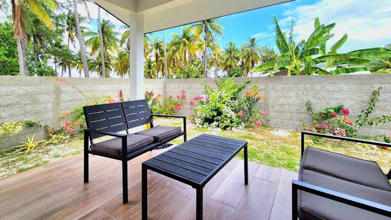 Der Bungalow bietet eine moderne Ausstattung und verfügt über einen Garten, einen eigenen Strandbereich sowie eine Terrasse. Das Check-in ist ab 15:00 Uhr bis 23:30 Uhr möglich, während der Check-out zwischen 01:00 Uhr und 10:00 Uhr erfolgt. Der Aufenthalt ist für Gäste ab 18 Jahren vorgesehen, und Haustiere sind nicht gestattet.