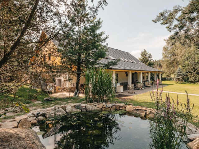 Das Hotel Farma Mračov in Kadov ist der ideale Ort für einen erholsamen Aufenthalt inmitten der Natur. Mit kostenfreiem WLAN, einem Garten und einer Terrasse bietet das Hotel seinen Gästen eine komfortable Unterkunft mit Zugang zu einer Sauna. Die klimatisierten Zimmer sind mit einer eigenen Küche ausgestattet, die alles bietet, was man für einen angenehmen Aufenthalt benötigt. Die Lage des Hotels ermöglicht es den Gästen, die umliegenden Sehenswürdigkeiten wie den Hrad Zvíkov und den Orlik-Staudamm zu erkunden. Der Flughafen Václav-Havel-Flughafen Prag ist ebenfalls gut erreichbar.