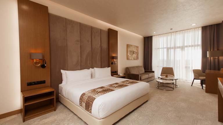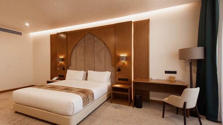 Die klimatisierten Zimmer im Farovon Khiva Hotel sind modern und komfortabel eingerichtet. Jedes Zimmer verfügt über einen Schreibtisch, einen Balkon mit Blick auf die Stadt, ein eigenes Badezimmer, einen Flachbild-TV, Bettwäsche und Handtücher. Ein Kühlschrank ist ebenfalls in jedem Zimmer vorhanden.