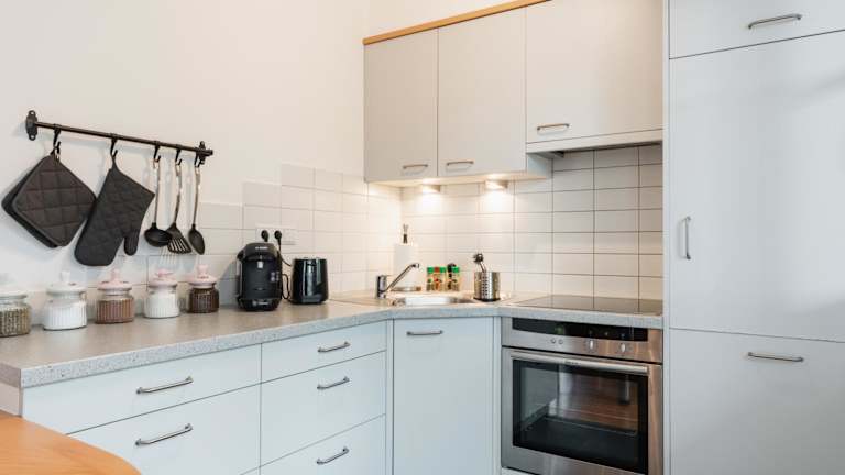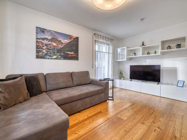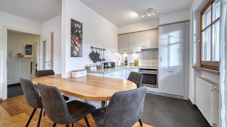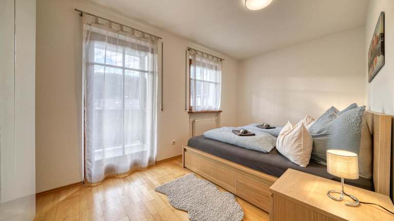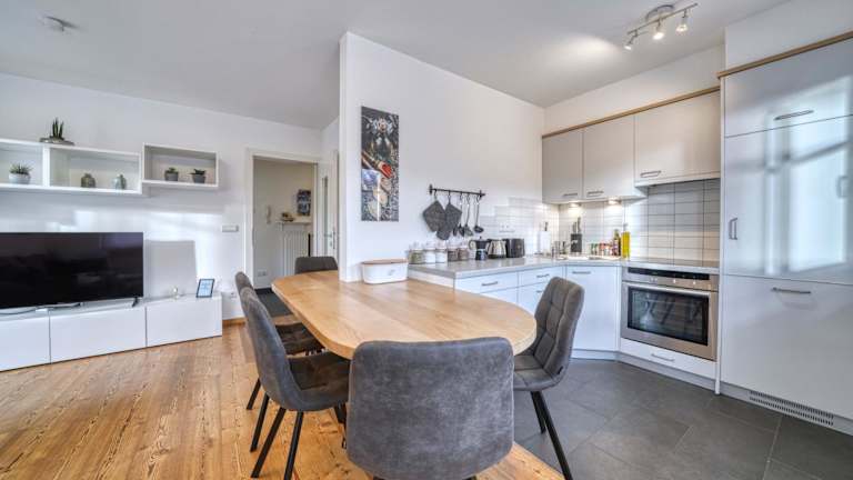 Die Ferienwohnung umfasst zwei Schlafzimmer, ein Wohnzimmer mit einem Flachbild-TV, eine gut ausgestattete Küche mit Kühlschrank und Geschirrspüler sowie ein Badezimmer mit Badewanne. Handtücher und Bettwäsche werden bereitgestellt. Ein Balkon gehört ebenfalls zur Ausstattung.