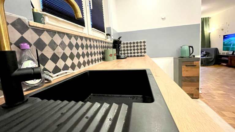 Die Ferienwohnung umfasst ein Schlafzimmer, ein Wohnzimmer, eine voll ausgestattete Küche und ein Badezimmer mit Dusche. Zimmer sind schallisoliert und bieten eine Nichtraucherumgebung.