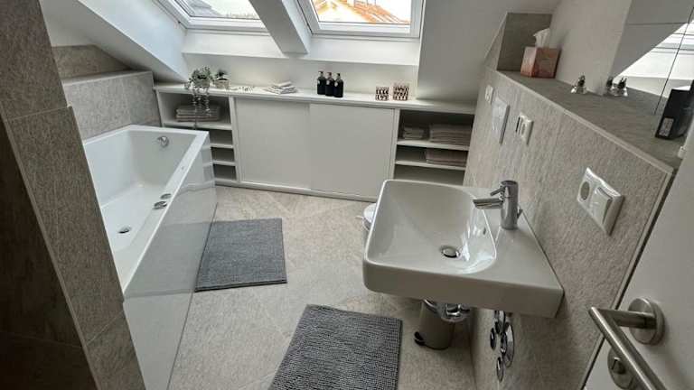 Die Ferien Penthaus Wohnung befindet sich in Brunnthal, etwa 21 km vom Bahnhof München Ost und 23 km vom Deutschen Museum entfernt. Das Bayerische Nationalmuseum ist 24 km entfernt, während der Flughafen München in einer Entfernung von 48 km liegt.