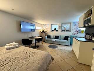 Die Unterkunft umfasst ein Schlafzimmer, eine voll ausgestattete Küche mit Kühlschrank und Geschirrspüler sowie ein Badezimmer mit Dusche und Haartrockner. Handtücher und Bettwäsche werden bereitgestellt. Die Wohnung bietet kostenfreies WLAN und einen Flachbild-TV.