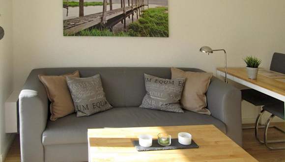 Das Appartement ist mit einem Wohnzimmer und einer voll ausgestatteten Küche ausgestattet, die einen Kühlschrank und einen Geschirrspüler umfasst. Zur Unterhaltung stehen ein TV, ein Blu-ray-Player, ein DVD-Player sowie ein CD-Player zur Verfügung.