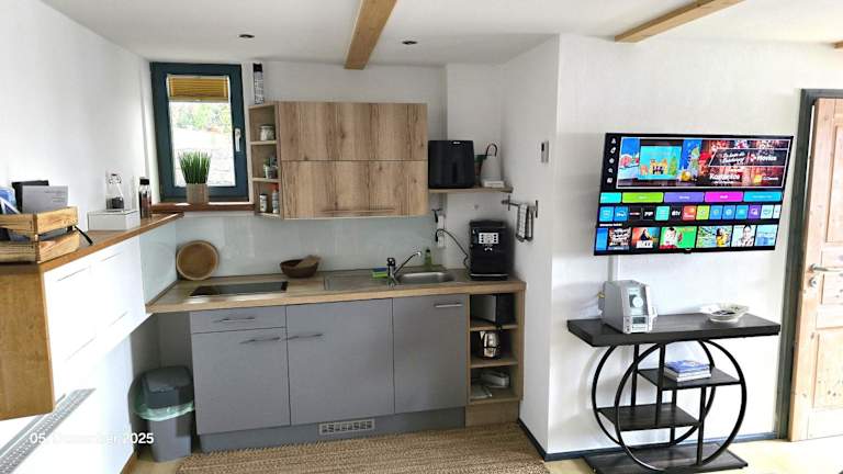Die Ferienwohnung verfügt über ein Schlafzimmer, ein Badezimmer, sowie eine voll ausgestattete Küchenzeile. Zur Ausstattung gehören Bettwäsche, Handtücher, ein Flachbild-TV mit Satellitenkanälen, ein Essbereich und eine Terrasse mit Gartenblick. Ein Grill steht ebenfalls zur Verfügung.