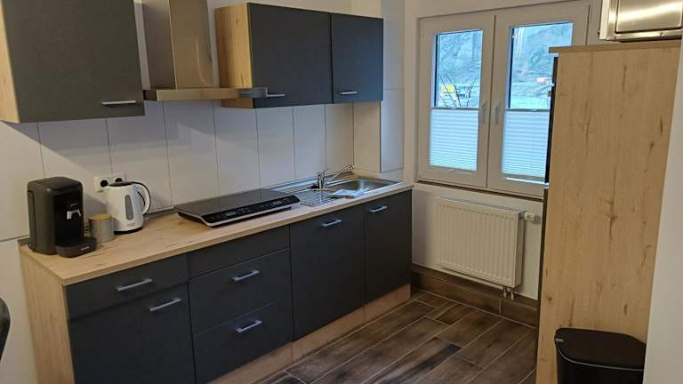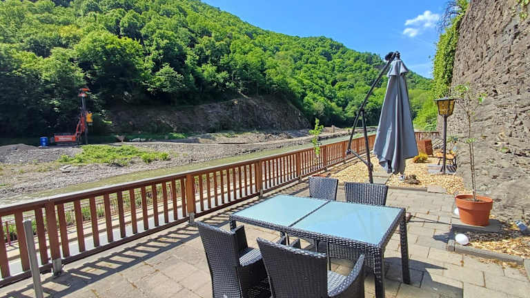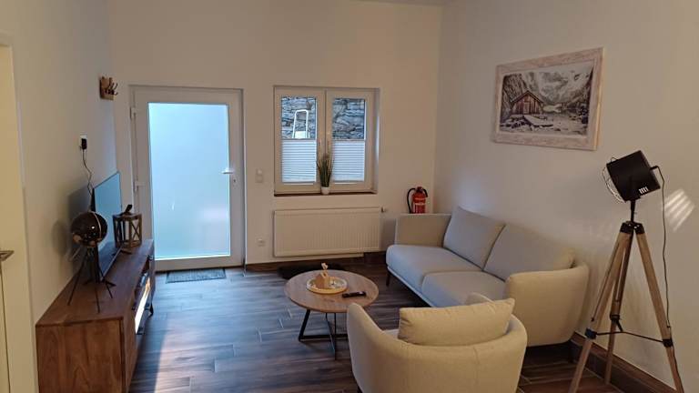 Das Ferienapartment Zur Bunten Kuh Walporzheim wurde im Jahr 2024 erbaut und bietet eine komfortable Unterkunft mit Flussblick. Die moderne Ferienwohnung verfügt über einen eigenen Zugang und eine Terrasse mit Blick auf die Berge.