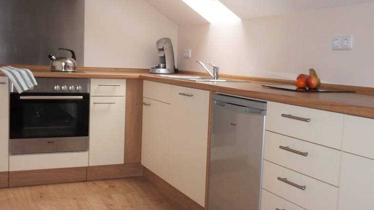 Die Ferienwohnung bietet zwei separate Schlafzimmer, ein Badezimmer, eine voll ausgestattete Küche mit Essbereich und Kühlschrank sowie ein Wohnzimmer mit Flachbild-TV. Auf Wunsch sind Handtücher und Bettwäsche gegen Aufpreis verfügbar.