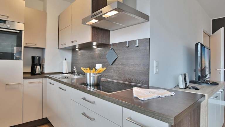 Das Appartement ist mit einer voll ausgestatteten Küche ausgestattet, die einen Kühlschrank und Geschirrspüler beinhaltet. Es sind weiterhin ein Badezimmer mit Dusche und Haartrockner sowie verschiedene Unterhaltungsmöglichkeiten wie ein TV, Blu-ray-Player, DVD-Player und CD-Player vorhanden. Bettwäsche und Handtücher sind nicht im Preis inbegriffen, können jedoch gegen eine zusätzliche Gebühr von 30 Euro pro Person angemietet oder selbst mitgebracht werden. Die Unterkunft ist eine Nichtraucherunterkunft.