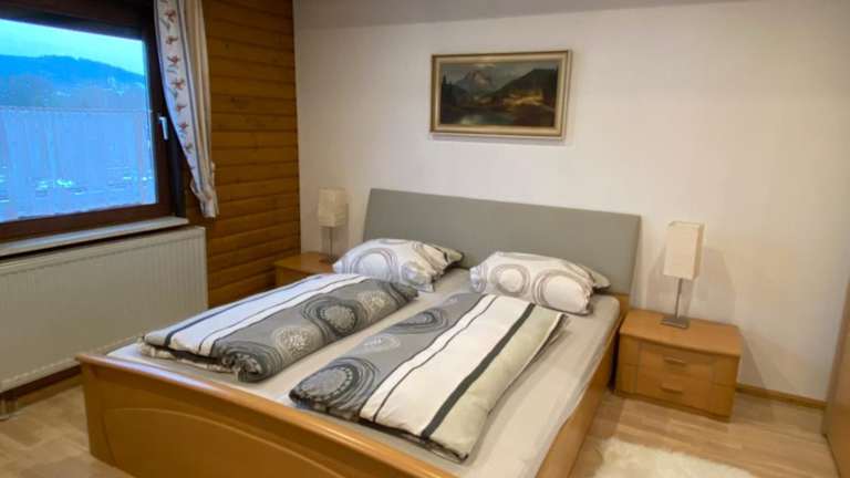 Die Ferienwohnung verfügt über zwei Schlafzimmer und einen Balkon mit Gartenblick. Zudem gibt es eine Terrasse mit Blick auf die Berge. Zur Ausstattung gehören ein Satelliten-Flachbild-TV, eine gut ausgestattete Küche mit Kühlschrank, Geschirrspüler und Ofen sowie ein Badezimmer mit Dusche und Haartrockner.
