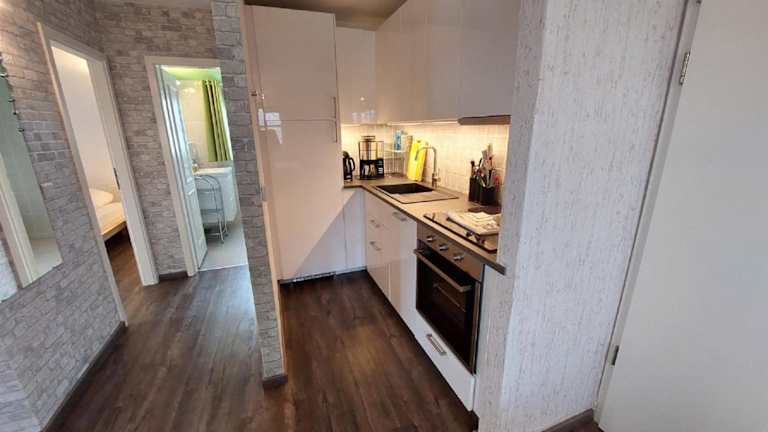 Die Ferienwohnung verfügt über ein Schlafzimmer, ein Wohnzimmer und eine voll ausgestattete Küche mit Kühlschrank und Kaffeemaschine. Das Badezimmer ist mit einer Dusche und einem Haartrockner ausgestattet. Handtücher und Bettwäsche werden bereitgestellt.